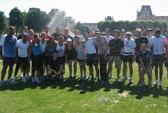 C’est parti pour les exercices, une première partie très « jambes » avec des foulées bondissantes, du travail de déroulé du pied, des levés de jambes, de la course à reculons. Les gens aux tuilleries sont un peu étonnés de nous voirent faire les majorette et courir à l’envers, mais les exercices sont vraiment très bon.