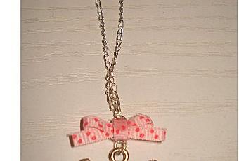 Alors comme je suis encore et toujours une amoureuse de son prince, j'ai confectionné un joli collier pour vous mademoiselles et :madames :) . Une jolie petite fille avec deux joli noeud pois rose pour accompagner un débardeur blanc par exemple :) . Je le mets en vente dans mes boutiques pour la maudique somme de 5€. Faites vite c'est une création unique :) .