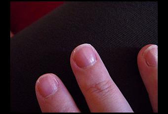 A la réception du vernis, je suis déçue. Oui, c'est un corail, difficile de le nommer autrement, mais pas celui auquel je m'attendais. Un corail pastel, très dans le genre que porte ma mamie...Je le met quand même, et sur des ongles pas nickels, c'est à dire pas manucuré du tout du tout, et surtout sur des doigts tout boudinés d'oedeme, tout moches. Donc absolument pas mis en valeur. Pour juger de la qualité du produit, je n'utilise ni base ni top coat.