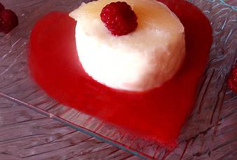 - son Bavarois à la poire sur coulis de framboises