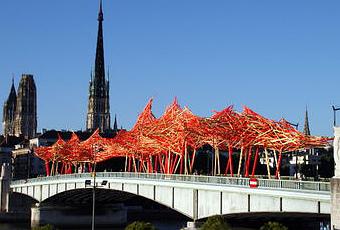 En effet, dans le cadre du festival "Rouen impressionnée", a été inaugurée "Camille", un véritable pont fait de milliers de planchettes, posé sur le pont Boeldieu.