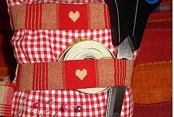 Ras le bol du radis, je me suis fais un nouveau pique-aiguille. J'ai pris du tissus vichy rouge et du tissus vichy à coeur :). Je suis contente du résultat et celui-ci est beaucoup plus pratique que l'ancien car je peux glisser mes ciseaux et mon mètre grâce à ses petites horizontales cousue soigneusement.