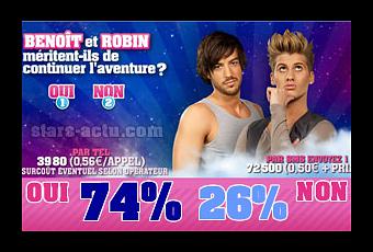 Pour l'instant, selon notre sondage, Robin et Benoit devraient rester dans la maison des secrets, avec 74% de vos votes.