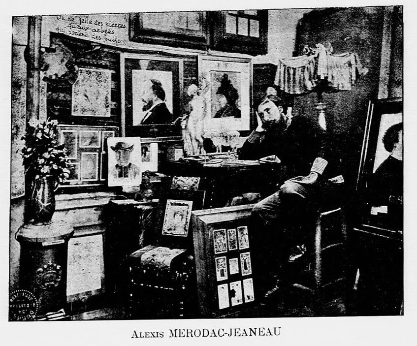 La lecture des "petites revues" est toujours bénéfique au fouineurs, c'est dans leurs colonnes que s'écrie l'histoire de la littérature et de l'art. En parcourant La Revue Contemporaine, publiée à Lille entre 1900 et 1902, on trouve un article d'Hector Fleischmann sur Merodack Jeaneau, déjà dans le Beffroi, Fleischmann avait présenté son ami et dit son admiration pour son œuvre. L'article de la Revue contemporaine, offre pourtant un complément d'information sur le curieux Alexis Mérodack et son "synthétisme", école dont on dit parfois qu'il fut le chef de file. On y apprend que Jean de la Hire, fonda une revue intitulée L'Idée synthétique (1), où Fleischmann donna un article sur Merodack Jeaneau. Fleischmann qui écrivit aussi une plaquette sur la Peinture synthétique. Enfin grâce à cette "petite revue", le portrait de Mérodack Jeaneau et deux de ses oeuvres, viennent apporter quelques pièces de plus au puzzle de la vie et l'œuvre de Mérodack Jeaneau commencé ici, à partir de la découverte de la revue Tendances Nouvelles. D'autres pièces viendront sans doute, avec le temps.