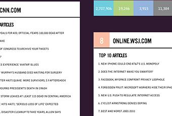 Quels sont les articles de grands sites comme TechCrunch ou le Guardian, qui sont le plus partagés ? Qui sont les influenceurs pour chacun des sites ? Quels sont les sites sociaux sur lesquels les articles sont le plus partagés ? Pour le savoir, voici une infographie réalisée par Flowtown.