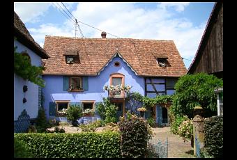 Connaissez-vous le Bleu de Hanau ? Cette couleur est née dans le pays de Hanau, à une cinquantaine de kilomètres au Nord-Ouest de Strasbourg. Dans la première moitié du XXe siècle, l’industrie chimique de la région produisait de l’alun ammoniacal, du sel oxalique et du bleu de Prusse… devenu Bleu de Hanau. Cette couleur est caractéristique des façades alsaciennes.