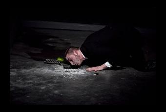 Un jeune homme svelte aux cheveux bruns est agenouillé sur la scène du « Studio Kablé ». Il brûle des feuilles de papier une a une. Pendant ce temps, le public prend place sur la tribune et écoute le monologue que le jeune homme prononce à toute vitesse dans un trou au sol. Jouant un extrait d’une pièce de Dostoïevski, il raconte de quelle façon il a séduit une jeune fille. Quand le jeune homme donne tous les détails des préparatifs, on prend conscience, qu’il n’a pas vraiment toute sa tête. Frédéric Baron est l’un des étudiants en dernière année au TNS.