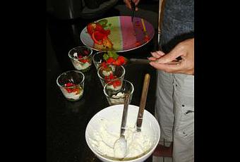couper les poivrons sans peau en dés, répartir les verts dans les verrines, puis une couche de brousse ciboulette, une couche de poivron rouge puis on fini par la brousse paprika!