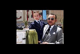 Selon le magazine américain Forbes, qui vient de publier son classement des souverains les plus fortunés de la planète, le roi Mohammed VI, 46 ans, possède la septième plus importante fortune des têtes couronnées du monde. Forbes lui attribue près de deux milliards d'euros. Voici à gauche le souverain marocain, accompagné de son fis, le prince héritier Moulay Hassan, lors de la récente inauguration d'un boulevard d'Oujda (voir Le Maroc expulse une famille suisse pour "credo évangéliste") qui a reçu le nom du prince (voir Le prince Moulay Hassan, sur qui repose l'avenir du Royaume).