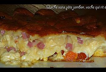 En voyant la tarte jambon et vache qui rit chez Mimi l'autre jour, j'ai tout de suite accroché ^^ Mais je n'avais pas de pâte. Oui je sais j'aurais pu la faire mais déjà rien qu'à l'idée d'allumer le four j'avais chaud alors m'imaginer étaler la pâte au rouleau, j'étais en sueur. J'ai donc fait une quiche sans pâte toute simple et très bonne.