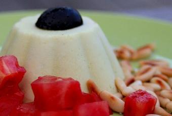 Démouler et servir avec des cubes de tomate, quelques pignons grillés et un trait d'huile d'olive.