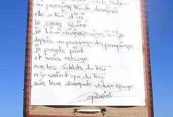 "Oui, et bien oui, mes amis, quoi? Un poète, oui, voilà. Pas la peine de nous faire cette tête de condoléance, de hausser les épaules, de froncer les sourcils, de lever les bras au ciel ou de vous gratter le menton, l'air goguenard. Ni de filer en douce.