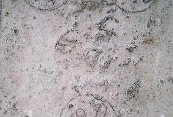 Ces modifications ne firent pas disparaître la pierre tombale gravée d'un maître maçon dont le nom est quasi illisible (Nicolas Bras...). Elle est datée de 1608. Elle comporte trois médaillons enfermant chacun deux outils de son métier. Celui du haut, à gauche, nous montre une équerre et un fil à plomb. Celui de droite comporte un marteau du genre têtu-pic, et un ciseau à large tranchant arrondi qu'on pourrait prendre pour un fer de cognée. Le médaillon inférieur renferme un compas et un outil droit qui pourrait être une règle, bien que ses extrémités obliques l'apparentent davantage à une pince (levier).