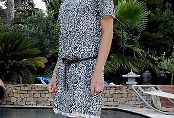 Robe Léopard Maje, Fond de robe du chinois, Ceinture Asos et Sandales Buffalo chez Spartoo
