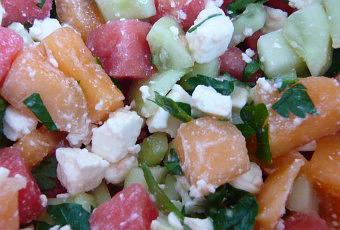 Ce mardi, j'avais préparé une salade typique d'été : melon-pastèque-concombre-feta, avec une touche de persil plat qui apportait un parfum inattendu très plaisant. C'était très frais et coloré, un vrai moment de plaisir !