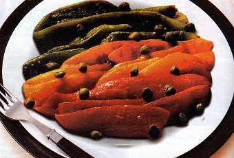 * rincez et égouttez les câpres et versez-les sur les poivrons