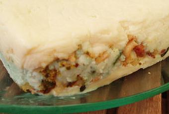 Étaler une première couche de fromage au fond du moule, ajouter par dessus la moitié du mélange de fruits secs, recouvrir d'un second fromage, puis le reste des fruits secs, finir par le dernier fromage.