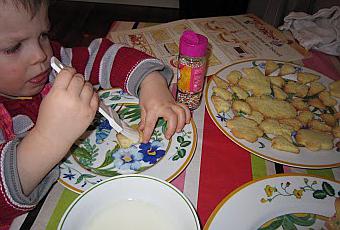 Passez la au pinceau sur les petits sablés (n'oubliez pas d'y tremper le nez et de bien lécher vos doigts à chaque instant).