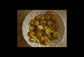 LE CARPACCIO DE COURGETTESLavez les courgettes et coupez les en lamelles le plus fines possibles* - disposez les lamelles de courgette dans une grande assiette et arrosez de jus de citron, d'une pincée de curcuma**, d'un peu de poivre noir, d'une pincée de sel "tendance Asie" et d'un filet d'huile d'olive. Quelques lamelles de parmesan ajoutées et le tour est joué!
