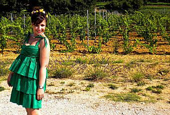 Robe : Jean-Charles de Castelbajac, Chaussures : San Marina, Collier & pochette : Vintage.