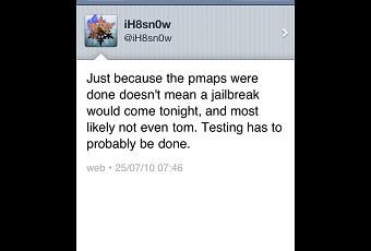 Traduction: Ce n’est pas parce que les pmaps sont finis qu’il faut dire que le jailbreak sera disponible ce soir et il est fort probable que ce ne soit pas le cas demain non plus. La phase de test doit probablement être faite.