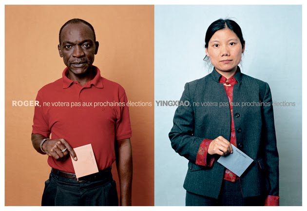 -Affiche en faveur du droit de vote des étrangers-Cette semaine, nous nous intéressons à une question politique récurrente : le droit de vote des étrangers en France. La vidéo suivante a été faite par des lycéens de terminale ES sur le droit de vote des étrangers aux élections locales. Ces élèves ont mené une étude à l'aide d'un questionnaire auprès de la population afin de sonder l'avis des gens sur cette question des "citoyens de l'ombre". Quelle n'est pas leur surprise lorsqu'ils constatent que leur étude ne correspond pas vraiment à la réalité décrite par les sondages "officiels". En effet, personne n'a répondu NON à la question fatidique. Les personnes ne voulant pas répondre ont-ils honte de leur opinion (ce qui peut paraître inquiétant dans une démocratie) ? Peut-on parler de racisme pour ceux qui ne sont pas d'accord ? Faut-il "évoluer" sur cette question ? Ce droit de vote peut-il intégrer les étrangers de manière plus importante ? Peut-on parler d'ingérence ? Le débat est ouvert par ces deux vidéos.