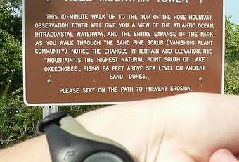 Other proof, in the same park (which must be located on a space-time fault) we decided to go the highest natural point in South Florida, 86 feet high. The sign below calls for a 10 minute walk to the summit. It was 5:15pm and 26 seconds when we started.