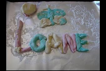 Tout d'abord ajoutez l'eau et le sel et le colorant ensuite seulement la farine !