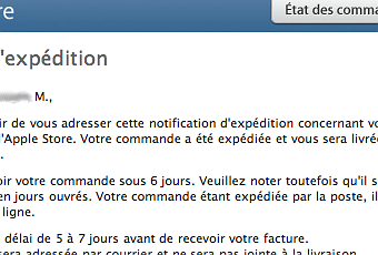 Bonne nouvelle pour les utilisateurs d’iPhone 4, les premiers Bumpers offert par Apple et son programme d’étui sont expédies ! Dans le mail envoyé par le service de la firme Américaine nous apprenons que le colis devrait être livré sous les 6 prochains jours. Nous nous empresserons de tester la bête munie de sa protection officielle et vous faire part ses résultats sur la réception de réseaux les heures suivants la livraison.