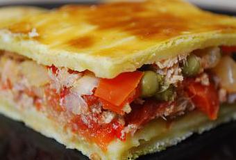 Etaler au rouleau les boules sur deux feuilles de papier sulfurisé, en deux grands rectangles fins. Enfourner la plus grosse des deux boules de pâtes à 200°C pour 5-10 minutes ( elle ne doit pas dessécher ). L'aplatir légèrement pour de la faire dégonfler. Etaler la garniture dessus en laissant les bords vides sur 1 cm. Recouvrir de la deuxième boule de pâte en décollant le papier sulfurisé. Souder les bords avec les dents d'une fourchette. Badigeonner du jaune d'oeuf battu avec l'huile d'olive et enfourner 20 minutes environ à 200°C.