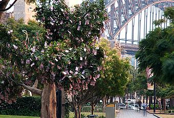 En Australie un arbre est apparu au milieu d'un parc un beau matin avec, accrochés à ses branches, des billets de 5$. Ce n'est bien sûr pas tombé du ciel : la banque Néerlandaise RaboBank est à l'origine de cette installation.
