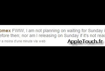 « Je ne prévois pas d’attendre dimanche [pour sortir le nouvel outil de jailbreak] s’il est prêt avant ; il ne sera pas disponible également dimanche s’il n’est pas prêt »