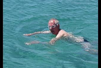 Je n’ai jamais réussi à entrer progressivement dans l’eau. En réalité, d’habitude, je plonge. Et j’en avais bien envie, car on était posé sur de superbes rochers surmontant cette eau qui invitait à s’y lancer. Certains le faisaient d’ailleurs. Mais j’avoue que j’avais senti venir les choses. Bref, je n’ai pas plongé. Mais quand l’eau est arrivé au sommet de mes jambes, je me suis dit « Mon gars, c’est maintenant ou jamais » ! Ce fut « maintenant ». Je me suis retrouvé dans l’eau, complètement immergé et totalement frigorifié.
