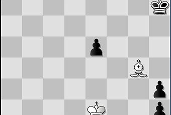 Comme à l'accoutumée dans les études que je présente sur ce blog, les Blancs semblent perdus. Comment parer au désastre que provoquerait la promotion noire imparable ? 1.Rf1! Les Blancs ont une ressource cachée ; ils vont littéralement museler le couple royal ! 1. ...h1=D Nous ne nous attendions pas à moins ! 2.Ff3 Dh2 Seule case... Nous pressentons déja que la Dame n'est pas au faîte de ses capacités ! 3.Fe4+ Ce n'est pas seulement un échec, le Fou bloque le Pe5 et prend le contrôle de cases importantes à l'aile-Dame ! 3. ...Rh6 Et maintenant ?