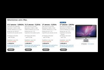 La nouvelle gamme d’iMac constituée de 4 modèles est désormais disponible. L’iMac 21,5 pouces intègre le dernier processeur Intel Core i3. Le modèle 27″ adopte au choix les processeurs i3, i5 ou i7. Les prix s’affichent à la hausse, de 100 à 200 euros selon les modèles. Les iMac vont de 1 199 euros pour le 21,5″ double-coeur à 3,06 GHz avec 500 Go de stockage à 1 999 euros pour le 27″ Quad-Core à 2,80 GHz et 1 To de stockage.