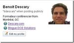 Sur Google Profile vous pouvez entre autre révéler votre nom, votre nom d’usager Google, insérer une photo, révéler l’endroit où vous vivez et les liens de vos sites Web. Vous avez évidemment le choix de révéler ce que vous désirez et même de ne pas compléter cette fiche. Cette carte d’identité de Google devrait être de plus en plus présente sur les différents services de Google au cours des prochains mois.