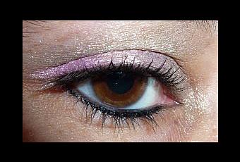 J'ai mouillé un pinceau mousse pour appliquer les fards, ça évite de faire tomber plein de matière sous l'oeil.
