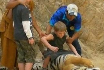 EnThaïlande, leTempledesTigres, près de Bangkok,se présente comme un sanctuaire pour les félins en danger.Mais plusieurs ONG dénoncent (?) ses pratiques.Source AFPfr/LE REPORTAGE VIDEO/