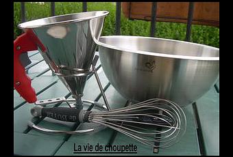 - un cul de poule ; un entonnoir à piston et un fouet et de la marque "de Buyer".