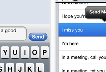 Texto, application à 0,79€ sur l’AppStore, possède quelques messages pré-enregistrés en Anglais mais il vous sera bien heureusement possible de les modifier à souhait. Il suffira d’en toucher un pour ouvrir l’application native SMS et d’ajouter un contact pour que le message soit déjà prêt à envoyer. Une fonction qui manquait pour un téléphone haut de gamme.
