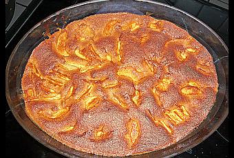 m Verser cette pâte sur les pommes.