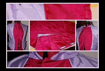 On retrouve tout : la basque, la doublure, le col (pas fini) et les devants qui attendent sagement leur boutonnière.