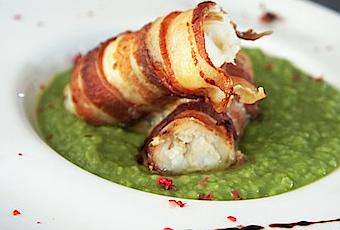 Je décongèle mon poisson , je l’enroule dans une tranche fine de lard , le dépose sur une plaque de cuisson recouverte d’une feuille de papier cuisson , un filet d’huile d’olive , quelques aromates ( graines de fenouil) et il va passer quelques 30 minutes à 180 deg.