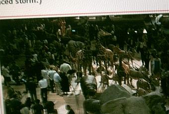 Photo de la foule des physiciens dans la grande galerie de l’Evolution du muséum d histoire naturelle de PARIS avant le service du buffet !et le commentaire du bloggueur américain : » the French excellence in high energy physics seemed to be contained in circle of a 30 km radius centered on the Tour Eiffel. ! »et PAN pour les provinciaux !