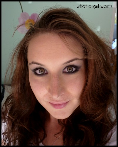 Côté matos: crayon Zero d'Urban Decay en base, liner léger et muqueuses, fard poudre libre anthracite de chez BareMinerals, fard Zero toujours Urban Decay en coin externe, fard Sfumato taupe de chez Une en dégradé sur le haut, fard argenté dans le coin interne de chez Concept Of Beauty, mascara noir Gemey (c'est l'effet faux cils au fait, j'ai regardé cette fois!)