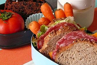 Des petits sandwichs salade saucisson fromage, des petites carottes à croquer, une tomate mangée avec une pointe de sel, une cup de mayo cachée derrière les carottes et en dessert, du rich cake de chez Regent's Park émietté dans un yaourt maison.