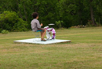 Voici l'exemple type d'un cadeau de Noël qui RESTE dans le Périgord. Non mon chéri on ne ramènera pas cette batterie à Paris. On ne peut pas faire de la batterie dans un appartement. A la campagne en revanche.... Résultat, à peine foule-t-il le sol d'Auriac qu'il grimpe chercher sa batterie. Les vacances commencent toujours mal à cause des roulements de tambours. L'autre jour, j'ai un peu craqué et j'ai sorti la batterie dehors en lui disant d'aller jouer loin loin loin. Il disparu, traînant la patte. 10 minutes plus tard, inquiète de ce silence auquel je n'étais pas habituée, je pointe mon nez et découvre que Swann avait traîné sa batterie loin loin loin sur un bloc de béton. Se constituant ainsi une scène lui permettant de faire profiter de sa représentation aux abeilles et grillons qui trainaient là. Sublime !