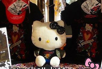 Sur cette photo où on y voit les casquettes et le t.shirt de la collaboration Ed Hardy x Hello kitty , on remarque surtout la peluche au centre , vêtue au look de la marque ! Alors est-ce une peluche qui est juste là pour "la déco" ou s'agit-il encore d'une édition limitée ? Mystère.En attendant même si j'aime pas vraiment les articles de cette collaboration , la peluche elle me plait bien ...