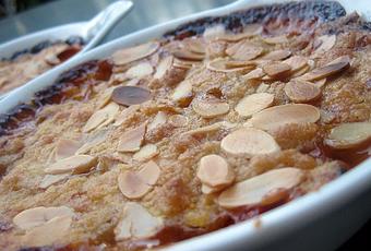 crumble sur les abricots. Parsemer d’amandes effilées.