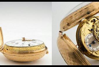 tact signée Julien Le Roy à Paris, porte le n° 2909. Les particularités remarquables de cette montre en font un modèle exceptionnel : boîte en or à décor ciselé d'ondulations, contre lunette
